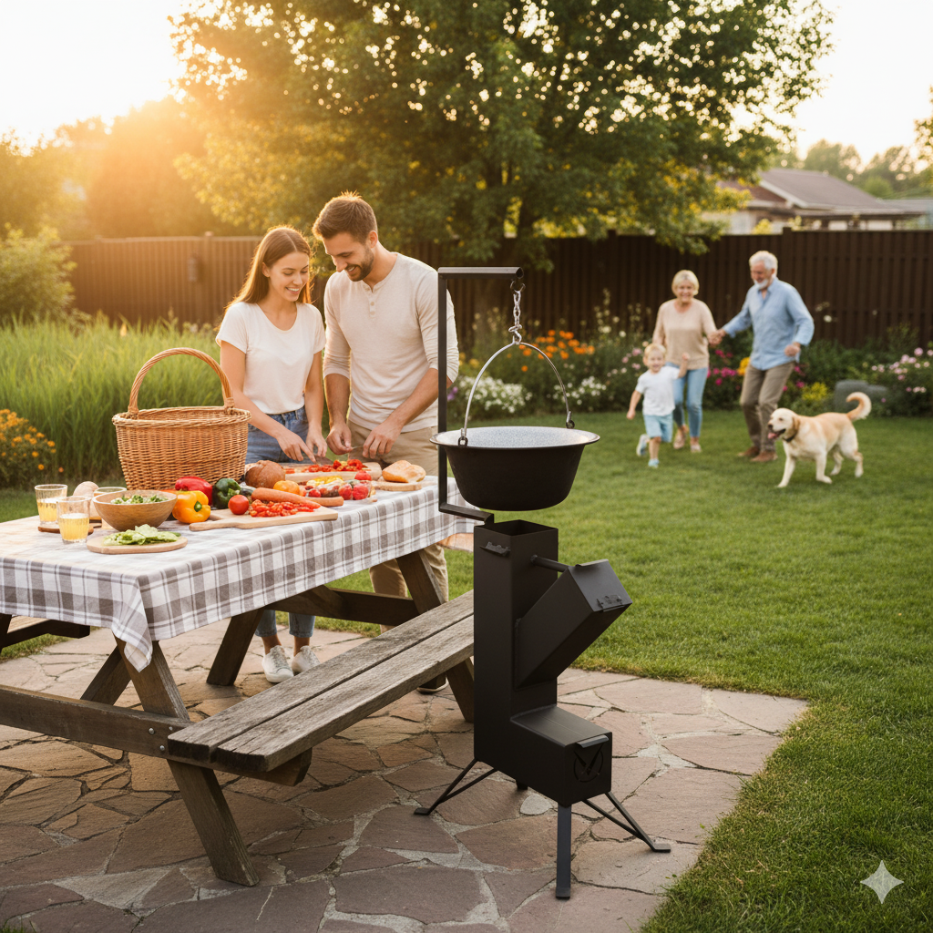 Masszív és tekintélyes kialakításának köszönhetően ideális választás bográcsozáshoz, grillezéshez és kültéri főzéshez.