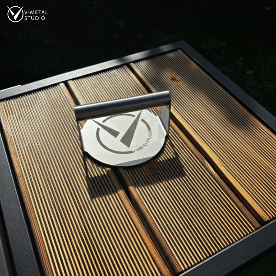 A V-Metál Stúdió masszív smash hamburger nyomója segítségével percek alatt olyan ropogós, szaftos húspogácsát süthetsz,